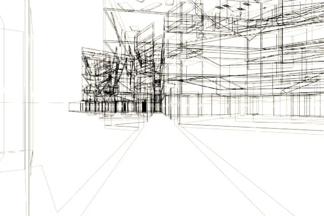 Just as it was formed to connect to the broader urban context, the grid was formed also as a way for the project to connect back to the site itself. To facilitate this, the main axes upon which the design is situated are a connection of the existing leisure areas on the site as well as an extension of the existing city grid. There are smaller links implemented including construction lines projected from corners of the landscape on the site or angles extended from neighbors’ buildings, which serve as secondary axes. Structural blades are shaped by the grid and manipulated to create program; dictating circulation while challenging or allowing what can be seen.