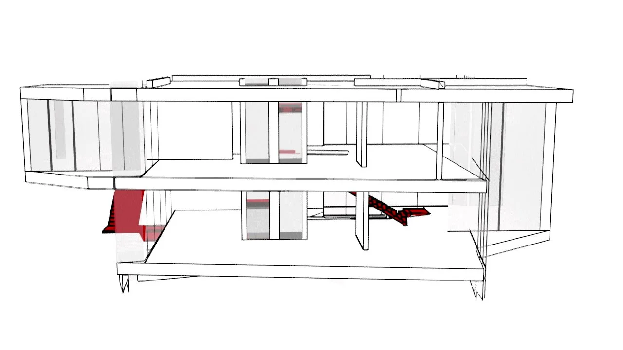 To understand an organic structure it must first be broken down linearly into its abstract components. The central stairway of Zaha Hadid’s Maxxi Museum winds its way up the voided lobby, cutting the space with its curved form. The physical model is an abstract interpretation of negative space turned positive by the circulation path.